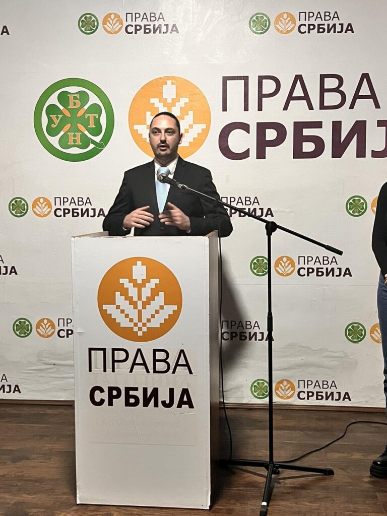 „Пре пет година када смо кренули у оснивање Бунта Праве Србије, односно тада неформалне групе БУНТ, имали смо само један циљ. Заветовали смо се на Светосавски пут, заветовали смо се на дела. Помагали смо свима када је то било потребно и увек неуморно са истим циљем и нашим мотом: „Дела, а не сувопарне речи!“ Велика ми је част што су данас са нама наши професори, доктори и наши драги пријатељи из сродних организација, а посебно се радујем што рођендан прослављам са оним саборцима који су ову нашу идеју носили и носе на својим плећима. Предстоји нам велика борба на предстојећим локалним изборима који нас очекују, a који ће бити прекретница у нашем даљем раду. Ми немамо ни мало страха и спремни смо за изборе који нам предстоје, а у прилог томе иде чињеница да нисмо као остале политичке партије које су са народом само у кампањи. За нас је кампања почела пре пет година када смо настали и она траје и данас. Ми смо константно на терену са народом који ту нашу пожртвованост цени и поштује и који ће нас на предстојећим изборима са оловком у руци увести поново у Скупштину Града, ако да Бог и у власт, а ми ћемо након уласка и даље бити на терену са народом јер је то наша дужност и обавеза. Оно што поручујемо са овог места јесте да крећемо у борбу за освајање власти и нико нас са тог пута неће одвратити. Зато сестре и браћо моја, нека нам је са срећом предстојећа борба“.