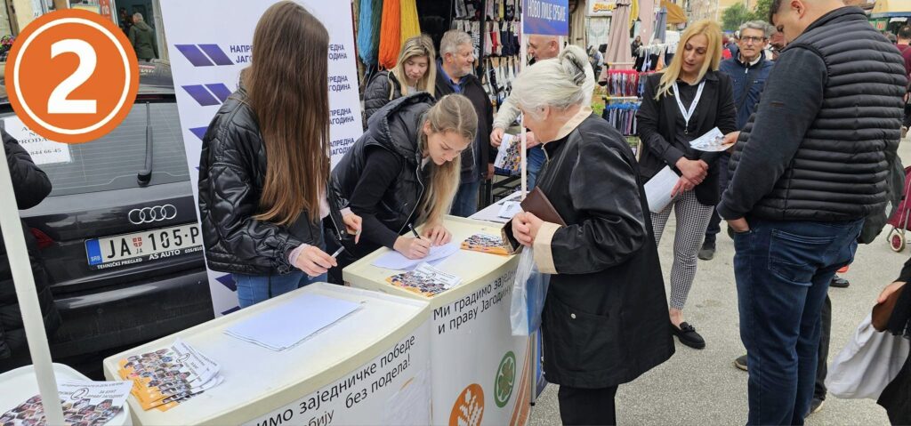 „Данас смо на градској пијаци са нашим суграђанима. Овде смо да видимо шта можемо да урадимо за њих, али такође и да им презентујемо шта смо све урадили. Ми смо прва политичка организација која је своје просторије отворила на пијаци и ту смо решавали проблеме наших пољопривредника, уписивали њихова газдинства, пружали правне савете, а некима помагали у гориву и сетвеном материјалу. Тако смо донирали тону ипо горива и преко три тоне сетвеног материјала. Одавде шаљемо поруку грађанима да не верују оним политикантима који се крију иза својих лидера у Београду и који вам причају бајке о Експу и о разним неким другим стварима које се уопште не тичу Јагодине и Јагодинаца. Грађани требају да верују онима који су свакодневно са њима и који иза себе имају искључиво дела. Зато на предстојећим изборима бирајте људе који се налазе на листи: „Ми се питамо! Дела, а не речи!“, а која се налази под редним бројем 2.“ Рекао је Душан Марковић, кандидат за градоначелника Јагодине и носилац ове изборне листе.