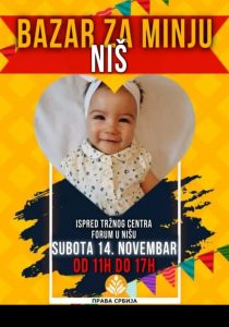 У суботу 14.11.2020. од 11 часова Мињини родитељи у сарадњи са Правом Србијом Ниш организују хуманитарни базар за помоћ око трошкова лечења мале Миње. Позивамо све Нишлије да се одазову и покажемо да умемо да помогнемо када је најтеже. Наше мало некоме значи много. Идемо НИШ!